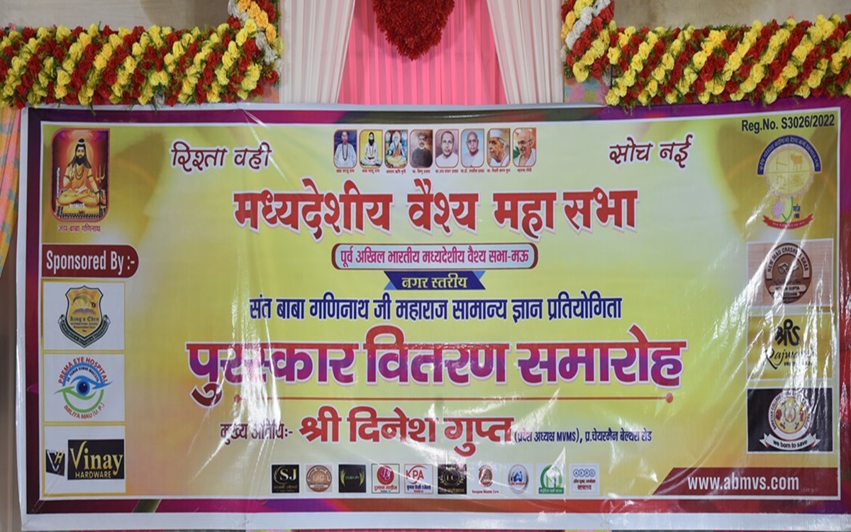 संत बाबा गणिनाथ जी महाराज सामान्य ज्ञान प्रतियोगिता की शुरुआत मऊ नगर में मध्यदेशीय वैश्य महासभा की जिला युवा समिति द्वारा सन 2023 में हुआ l प्रतियोगिता कराने का विचार उत्तर प्रदेश के युवा महामंत्री अभिषेक मद्धेशिया जो मऊ जिला के निवासी हैं, उनके मन में आया l प्रदेश युवा महामंत्री अभिषेक मद्धेशिया ने अपना विचार राष्ट्रीय युवा मंत्री हेमराज मद्धेशिया से साझा की इन दोनों युवाओं ने मिलकर इस प्रतियोगिता की परिकल्पना को मऊ नगर के सभी क्षेत्रीय अध्यक्षों तथा वरिष्ठ नगर समिति के सहयोग से प्रथम प्रतियोगिता का आयोजन ...