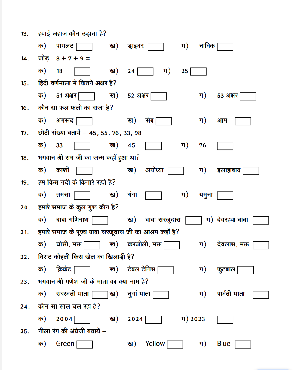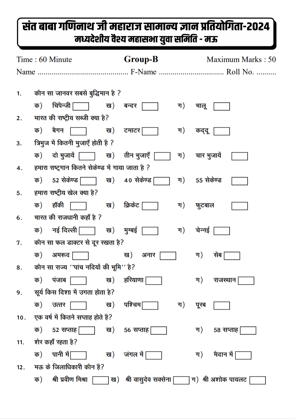 संत बाबा गणिनाथ सामान्य ज्ञान प्रतियोगिता 2024
