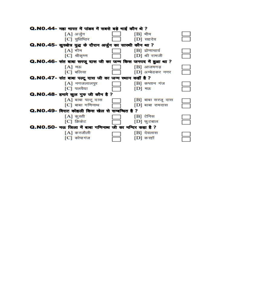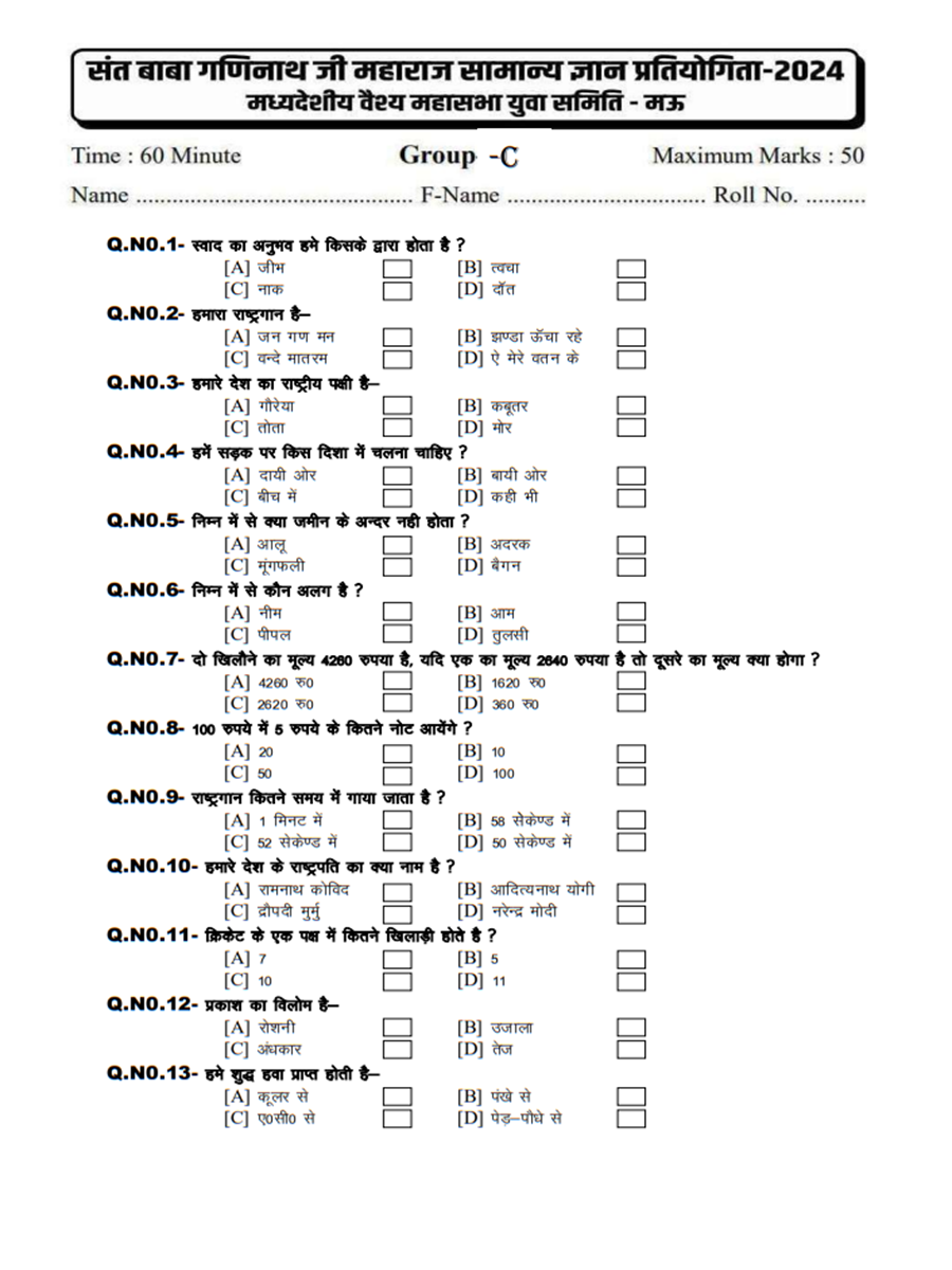 संत बाबा गणिनाथ सामान्य ज्ञान प्रतियोगिता 2024