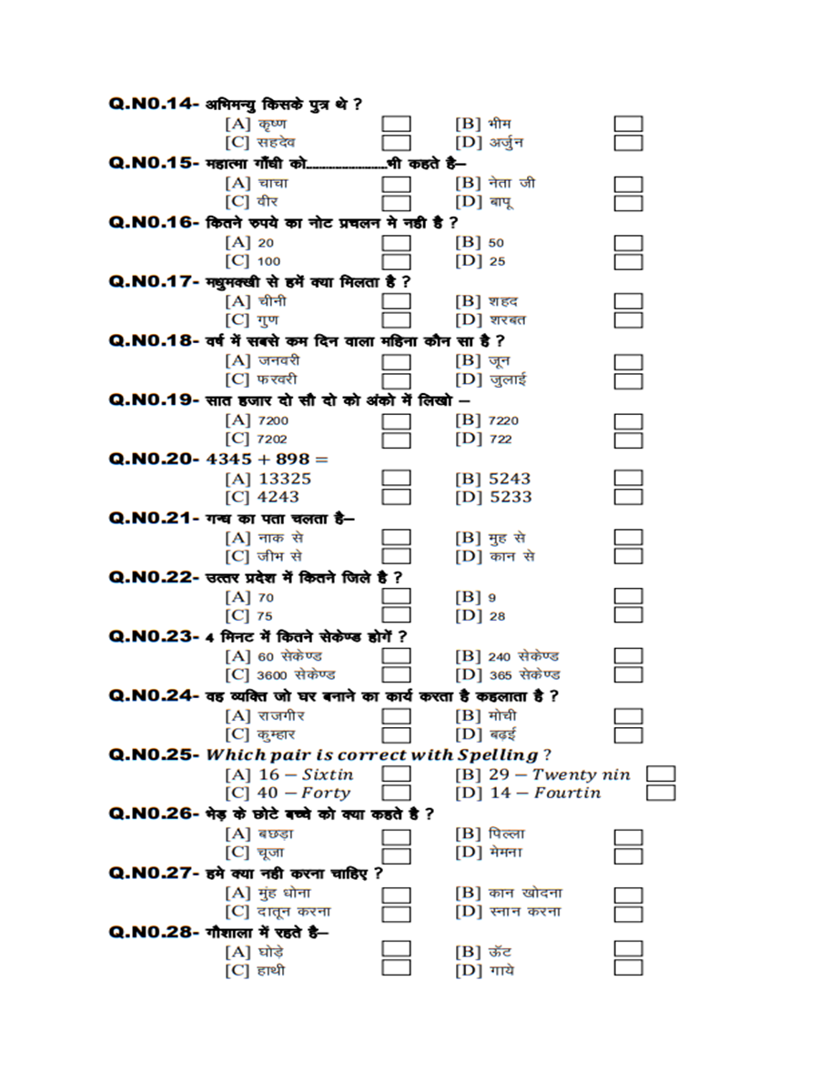 ग्रुप C का Question Paper