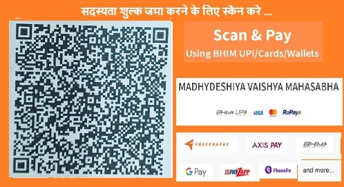 नोट - सदस्यता लेने के लिए पहले सदस्यता की धनराशी क्यू-आर कोड के माध्यम से दे और ट्रांजेक्शन आईडी का उपयोग सदस्यता लेने के लिए करे | एक मोबाईल नम्बर से केवल एक सदस्य मध्यदेशीय वैश्य महासभा के बन सकते है |